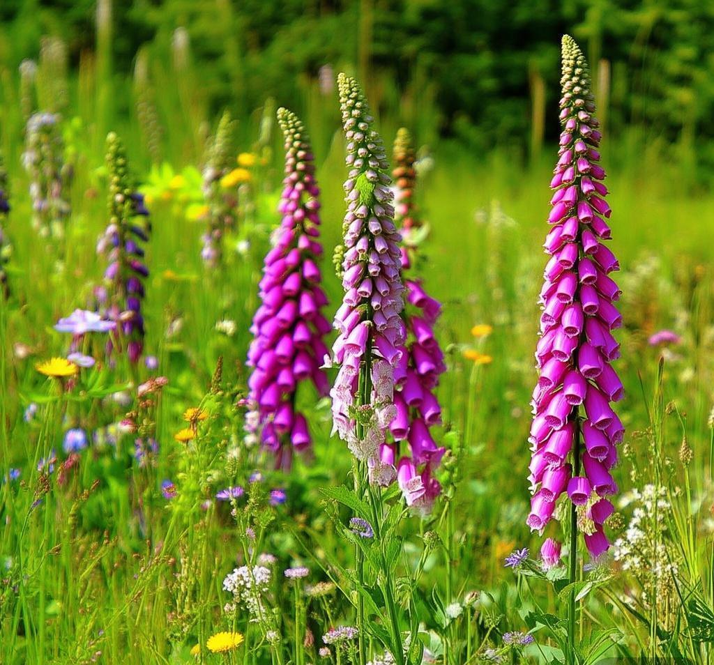 Lv.5 1小时前毛地黄叶互生,花冠钟形,紫红色。喜阳光充足、排水良好土壤。药用价值高,全草可入药,具有强心、利尿等功效。